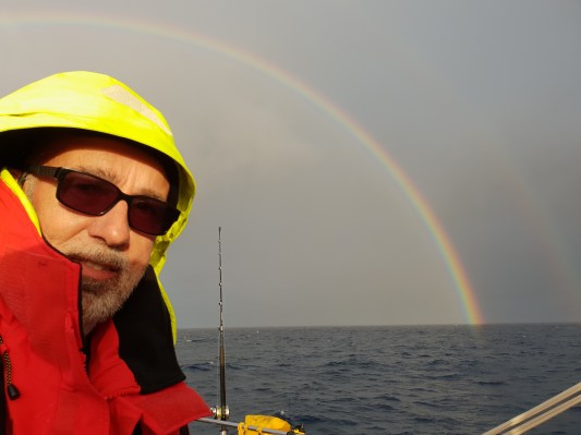 Wir fokussieren uns auf die schönen Momente. Fantastischer Regenbogen, tolle Sonnenuntergänge, die Unendlichkeit des Meeres und unser schönes gemütliches Schiff.