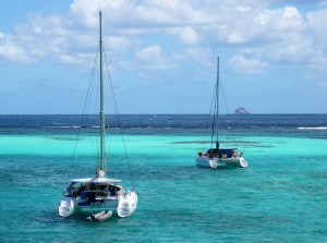 Natürlich bemerken die Boatboys das Erscheinen von 2 stattlichen Yachten mit dem gleichen Namen und dann auch noch mit deutscher Nationale. Ein Boy kommt ganz aufgeregt zu Angela mit seinem Surfbrett, berichtet ihr davon und fragt, ob er ihr das Schiff zeigen soll. Angela drückt ihm 3 ECD (1 Euro) in die Hand und dankt ihm lächelnd für die Auskunft. Sie versteht es wirklich gut mit den Boatboys, obwohl sie sie selten in Anspruch nimmt. Ab und zu drückt sie ihnen etwas Kleingeld in die Hand, wenn sie beim Anlanden am Dinghi-Dock helfen. Ich bin da viel genervter, weil sie das Ankommen und Aussuchen eines Ankerplatzes unter den genannten schwierigen Bedingungen zum Teil, der eine oder andere vielleicht sogar bewusst, behindern, damit man dann doch an eine gebührenpflichtige Mooringboje geht und ihre Dienste in Anspruch nimmt. Das wollen und brauchen wir aber nicht, weil Ankern einfach sicherer ist und eben auch nichts kostet. Die wirklich guten Boatboys bieten Brot, Fische oder Früchte an oder entsorgen bei Bedarf den Müll. Das ist ein guter Service, der etwas Geld wert ist.