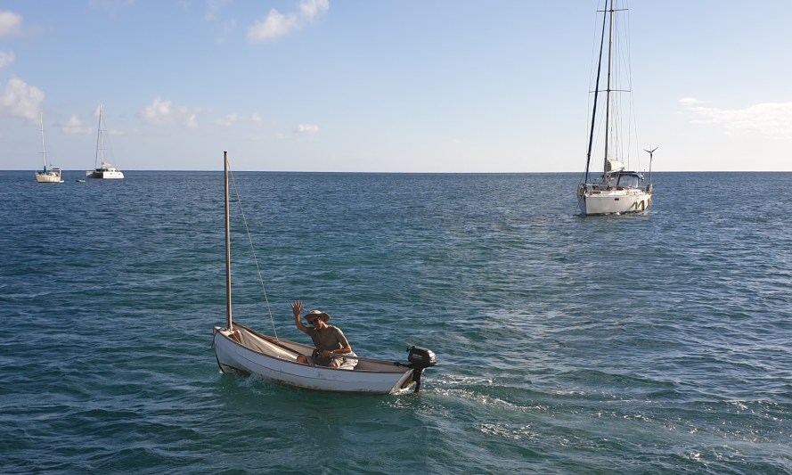 Angela is back on board here in St. Anne in Martinique and things do work much better than expected. She moves quite safely on board. Only in the dinghy with waves she feels same pain and is a bit unsecure.