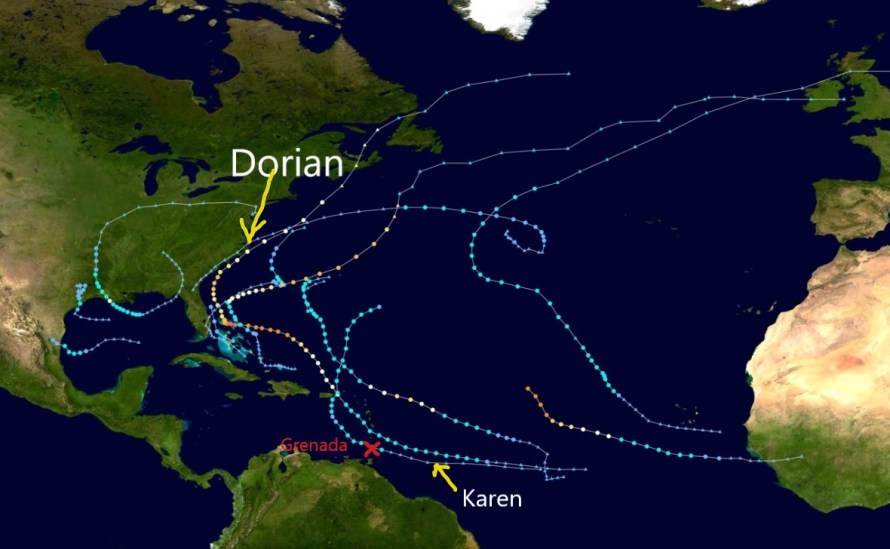 While being in Germany we carefully look at the news and forecasts of the National Hurrican Center. With quite some concerns we watch Dorian and Karen who come very close to Grenada.