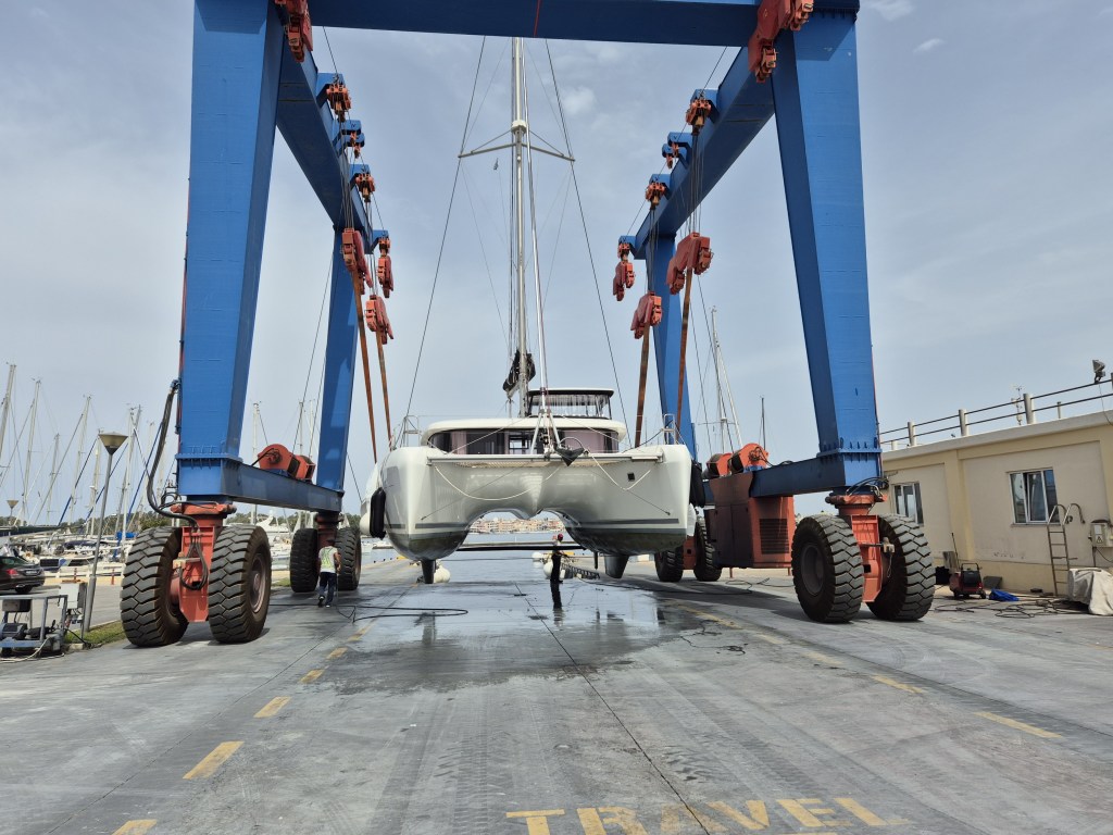 Bora Bora II wird in der Cleopatra Marina in Preveza an Land gestellt, bis wir im September 2024 wieder kommen. In der Zwischenzeit lassen wir das Unterwasserschiff überholen und das Schiff einmal komplett polieren.